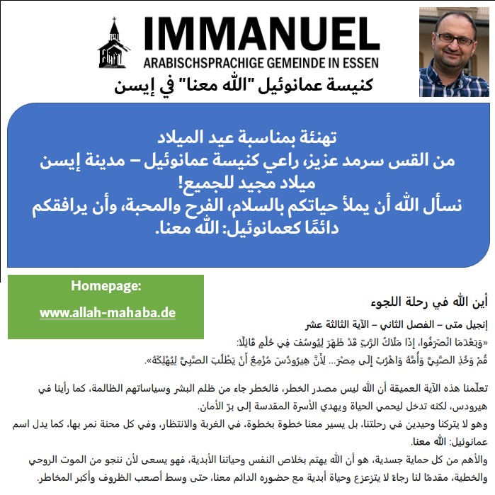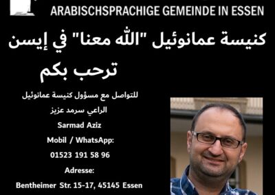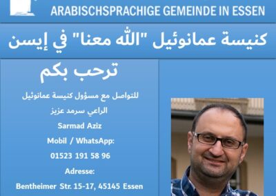 راعي كنيسة عمانوئيل أي الله معنا. الكنيسة الإنجيلية للناطقين باللغة العربية في مدينة إيسن: الراعي سرمد عزيز