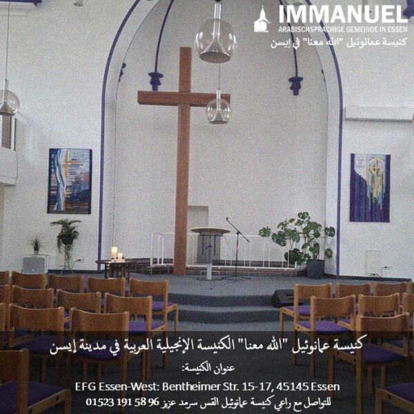 Die arabischsprachige Immanuel-Gemeinde in Essen trifft sich am 1., 3.+5. Samstag im Monat, jeweils um 17:00 Uhr. Am Donnerstag hat die Gemeinde eine Bibelstunde um 18.00 Uhr. Einmal im Monat hat die Gemeinde einen Büchertisch vor der Marktkirche in Essen.